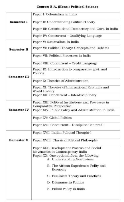 सेमेस्टर वाइज बीए पॉलिटिकल साइंस ऑनर्स सिलेबस
